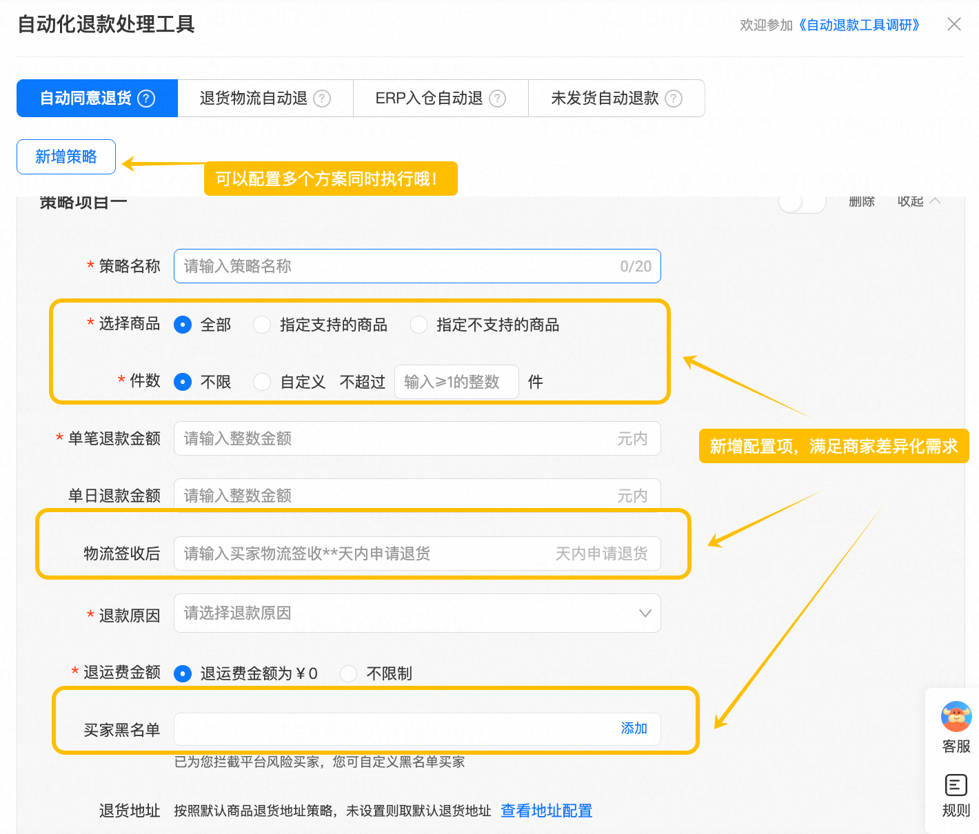 - 精准选品:指定哪些商品开启自动退,哪些必须人工审核